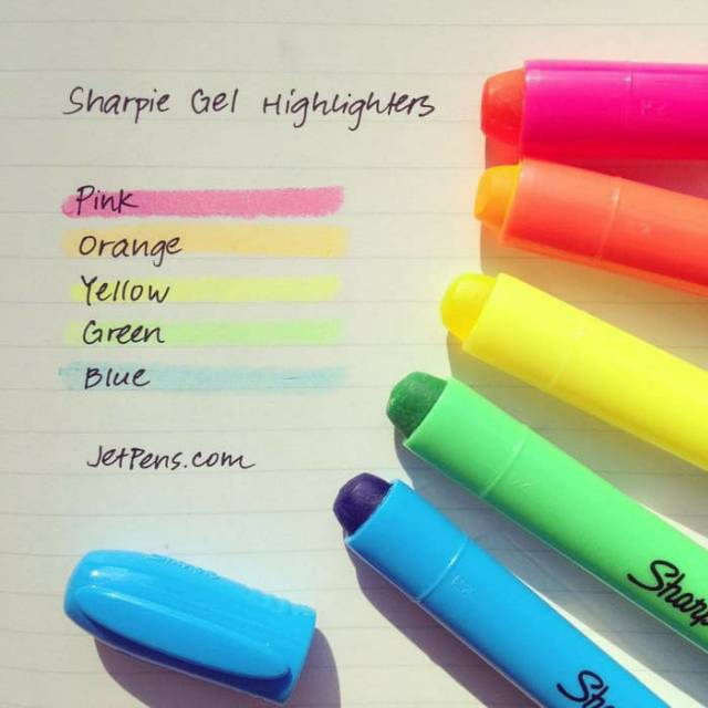 Sharpie gel highlighter the sharpie gel highlighter uses a rich ink free gel highlighter stick so you can mark over or underline beneath pen and marker ink as well as inkjet printouts and high gloss surfaces without causing smudges and smears. Clearly emphasize and underline without smudging your text with sharpie gel highlighters. 45 out of 5 stars 946.
